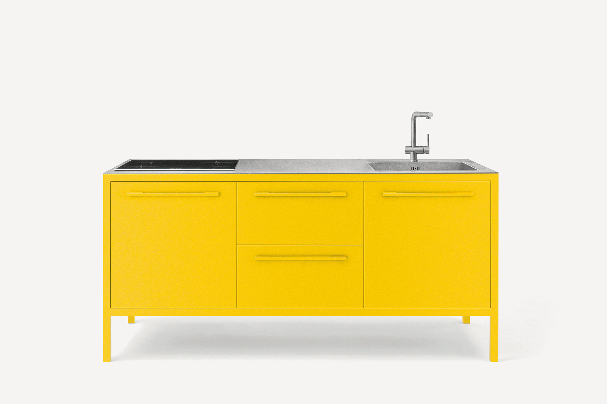Le cucine Frame sono proposte a 2 o 3 moduli, con top in acciaio Barazza o in Fenix NTM. L’acciaio – in finitura Vintage o satinata da 4 mm – è abbinabile con tutte le finiture Fantin, mentre i top in Fenix NTM sono proposti con telai nelle finiture Ultra-matt perché esattamente corrispondenti per colore, opacità e morbidezza al tatto. È così possibile ottenere cucine monocromatiche dalle solide strutture in metallo Fantin e con top resistenti e ripristinabili.